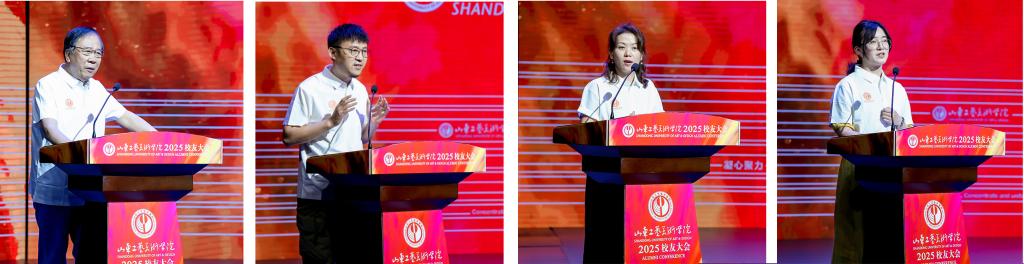 會長代表倪陽、張崇偉及海外校友會代表高璇、閆夢真、王平成相繼發(fā)言,他們分享了各自在不同地域、領(lǐng)域的發(fā)展成就,表達了對母校的深切感恩與美好祝愿,并一致表示將繼續(xù)弘揚山工藝精神,在專業(yè)領(lǐng)域精進不怠,在傳播東方文化中,展現(xiàn)山工藝人的卓越風(fēng)采與優(yōu)秀品質(zhì)。校友代表長周長積、季冬艷、叢志強、于麗麗分享了自己再次回到母校的感觸。