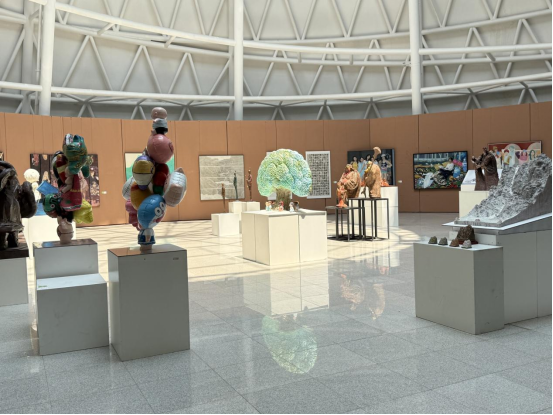 靜態(tài)展區(qū)劃分為四大板塊:學院作品展、數(shù)字藝術(shù)展、公共藝術(shù)展及跨專業(yè)展區(qū)。展區(qū)如同一幅精心繪制的藝術(shù)長卷,以多維視角全景式呈現(xiàn)當代設(shè)計生態(tài)的發(fā)展脈絡(luò)。漫步展區(qū),觀眾可以欣賞到來自視覺傳達設(shè)計學院、建筑與景觀設(shè)計學院、工業(yè)設(shè)計學院、服裝學院、造型藝術(shù)學院、現(xiàn)代手工藝術(shù)學院、數(shù)字藝術(shù)與傳媒學院、人文藝術(shù)學院、應(yīng)用設(shè)計學院與產(chǎn)教融合青島基地十大教學單位的1510件(套)畢業(yè)作品,這些作品凝聚著1877名2025屆畢業(yè)生的智慧結(jié)晶。