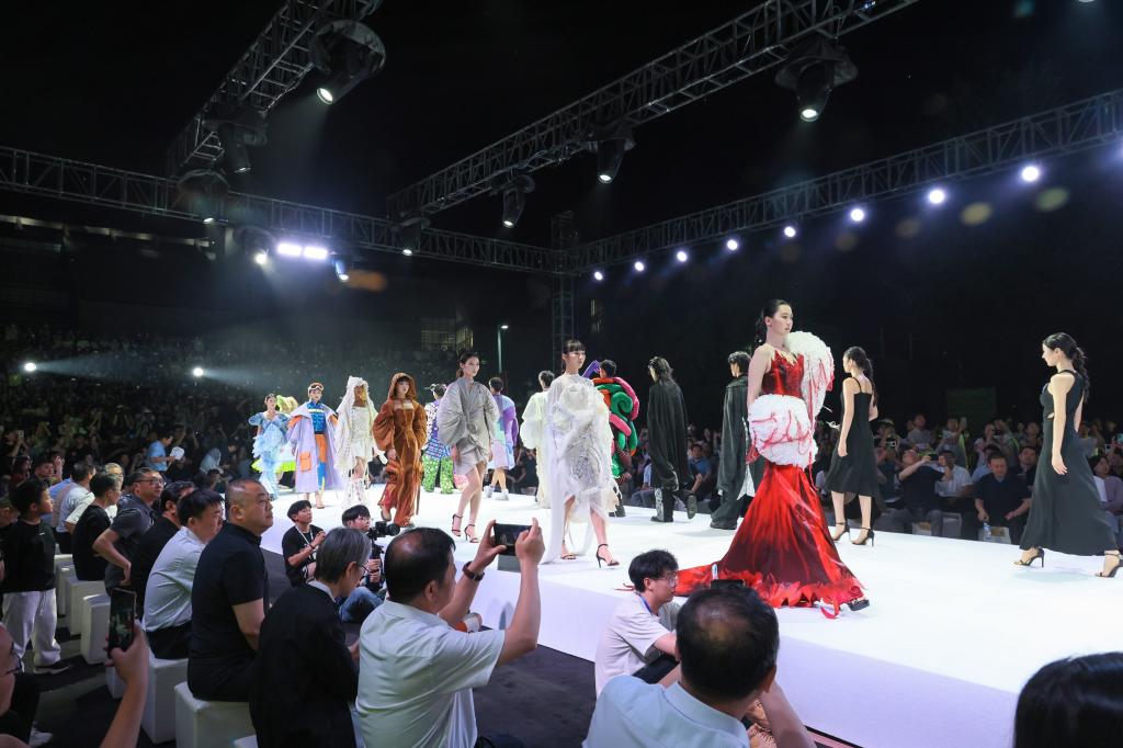動態(tài)展演由服裝學院、現(xiàn)代手工藝術(shù)學院、應(yīng)用設(shè)計學院聯(lián)袂呈現(xiàn),以“時尚三部曲”的華彩樂章驚艷亮相:108套服裝設(shè)計作品翩若驚鴻,45件首飾設(shè)計臻品流光溢彩,15組妝扮設(shè)計創(chuàng)作顧盼生輝。參加展演的模特曾多次參加國內(nèi)外各種專業(yè)賽事并屢獲獎項。