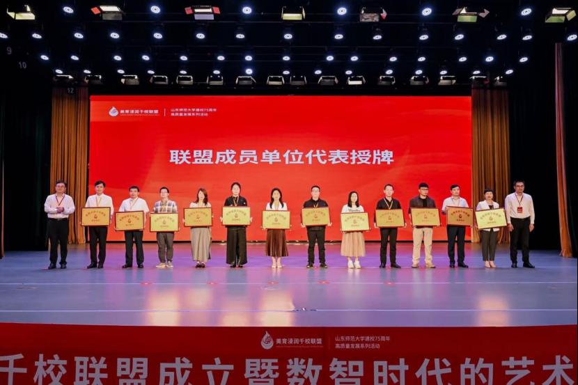 在聯(lián)盟成立儀式上,董占軍同與會專家領導共同啟動“美育浸潤千校聯(lián)盟”,并見證聯(lián)盟首批成員單位授牌儀式。