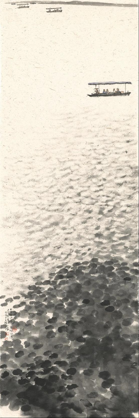 李學(xué)明?《天下西湖》?紙本設(shè)色?200cm×68cm?2004年