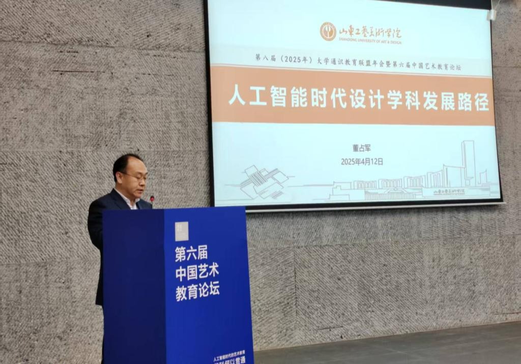 董占軍以《人工智能時代設計學科發展路徑》為題,聚焦“學科交叉:人工智能是新質生產力的核心驅動力”“技術賦能:人工智能重構設計教育生態”“產教協同:‘四鏈融合’協同創新體系”“國際視野:設計學科服務國家文化戰略”,介紹歡迎來到公海7108線路以“設計服務社會”為核心理念,探索構建人工智能設計教育新生態,通過智能算法賦能設計創新、拓展藝術邊界、構建本土化AI設計語料庫,深化產教融合、藝科融合,推動設計學科賦能人類美好未來的協同創新發展之路。