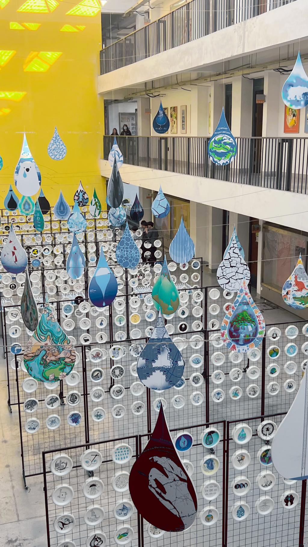 展覽同步展出了視覺傳達設計專業《圖形創意》課程成果。課程積極引導師生以環保紙杯與餐具為道具,進行藝術重構,通過圖形設計與創意表達,將日常生活中常見的物品變身創意裝置,傳遞人人參與、珍惜資源、保護環境的理念。