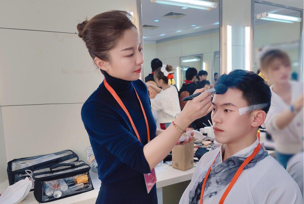 據(jù)悉,焦珊老師先后參與涵蓋春晚開場(chǎng)歌舞《如意舞步》、舞蹈《喜上枝頭》、武術(shù)《筆走龍蛇》、歌曲《一起China Fun》、歌舞《潮汕舞英歌》、合唱歌曲《我的家》、軍歌《青春奔赴》、歌曲《偉業(yè)》、舞蹈《太平有象》以及結(jié)束曲《難忘今宵》等12個(gè)節(jié)目的舞臺(tái)化妝工作,累計(jì)工作近100個(gè)小時(shí),為百余名演職人員提供妝造服務(wù),以高水平專業(yè)能力、高標(biāo)準(zhǔn)藝術(shù)素養(yǎng)和高度的責(zé)任心使命感,圓滿完成各項(xiàng)后臺(tái)服務(wù)保障工作,為春晚演出成功貢獻(xiàn)了山工藝力量。