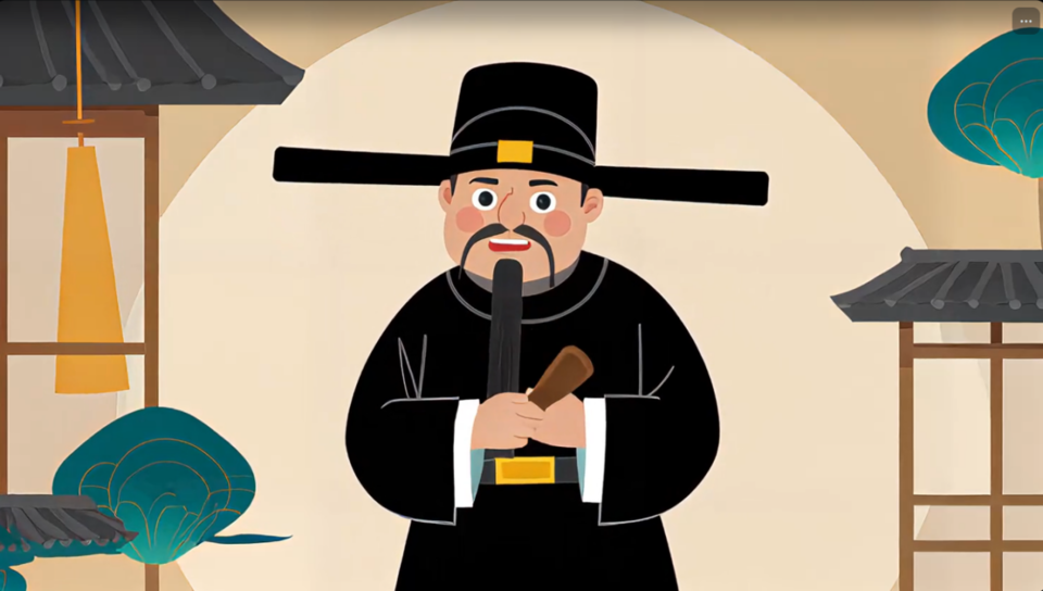 閆景林將合肥當?shù)刂麣v史人物包公與現(xiàn)代網(wǎng)絡詐騙問題巧妙結(jié)合,以動畫小品的形式進行演繹。為了塑造一個與傳統(tǒng)印象不同的和藹可愛的包公形象,她利用即夢軟件,通過文本生成視頻的方式進行了包公人物形象的創(chuàng)作,她說“考慮到在新年的大背景下,我希望創(chuàng)作出與傳統(tǒng)觀念中的嚴肅鐵面截然不同的一個和藹可愛的形象,所以在提示詞中加入了諸如“扁平化,可愛人物,平面動畫風格”這類的風格限定詞。” 成功生成了符合預期的包公形象,并以此為基礎(chǔ),創(chuàng)作了整部動畫短片。