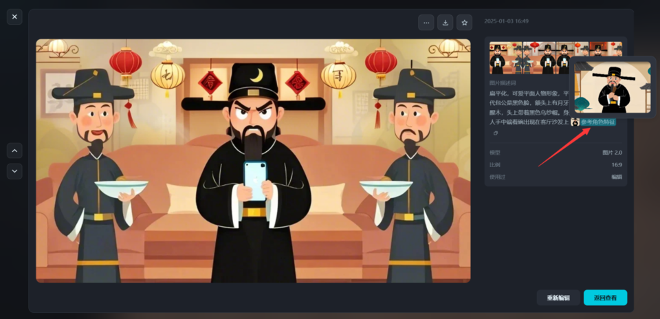 基于已有的包公形象參考角色特征生成后續(xù)畫面
