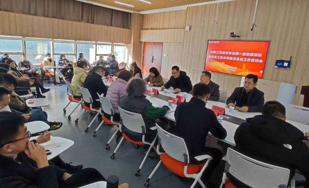 巡察組全體成員,造型藝術(shù)學(xué)院黨總支、現(xiàn)代手工藝術(shù)學(xué)院黨總支、數(shù)字藝術(shù)與傳媒學(xué)院黨總支、人文藝術(shù)學(xué)院黨總支領(lǐng)導(dǎo)班子和全體教職工、學(xué)生代表參加會議。