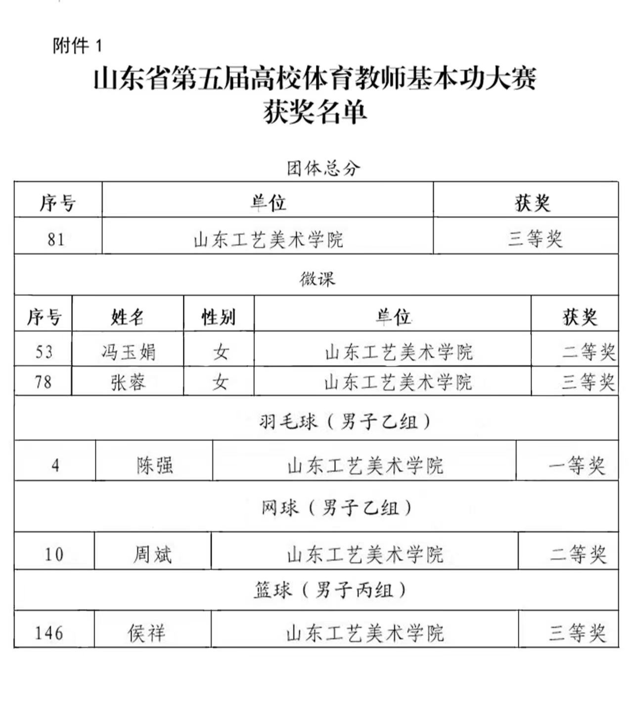 近日,由山東省教育廳舉辦的山東省第五屆高校體育教師基本功大賽公示了比賽結果。我校教師獲一等獎1項,二等獎2項,三等獎2項,獲得團體三等獎,這是我校近年來在此項賽事中獲得的最好成績。