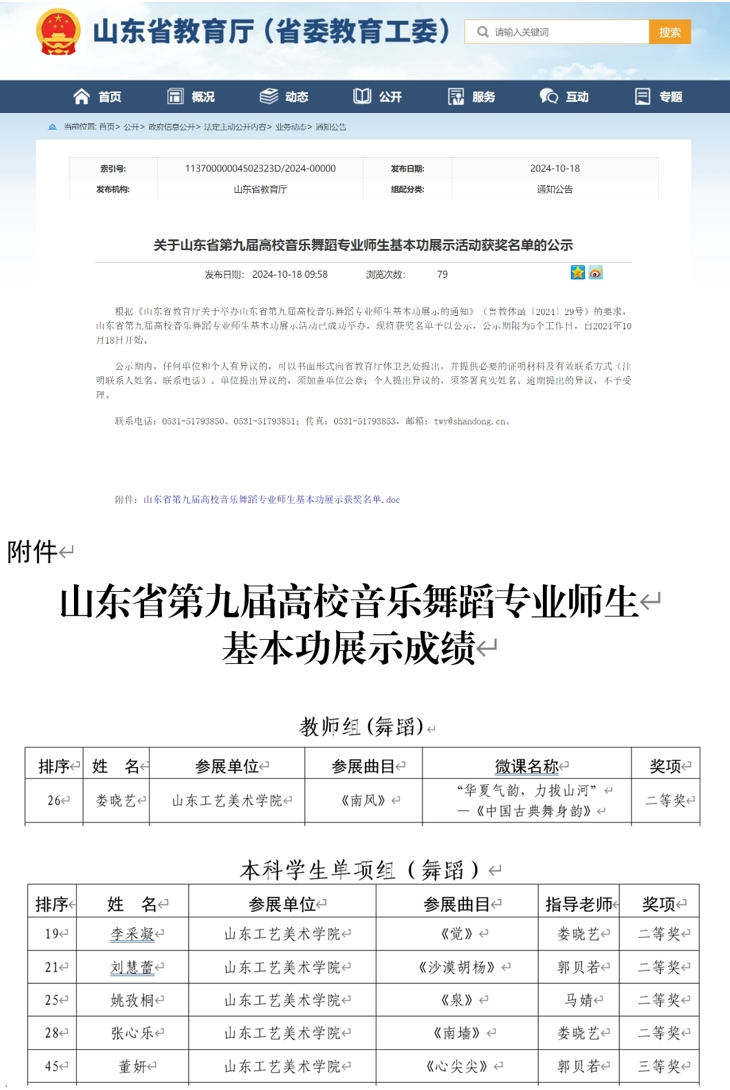 近日,由山東省教育廳舉辦的山東省第九屆高校音樂舞蹈專業(yè)師生基本功展示在淄博師范高等專科學(xué)校落幕,我校師生獲二等獎5項、三等獎1項。