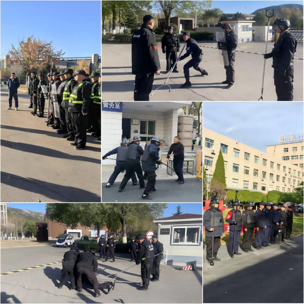 11月26、28日,千佛山校區、長清校區分別開展了反暴防恐專項演練。其中長清校區邀請分局民警教官霍彥東一行三人,為全體保安開展防暴恐專項培訓。模擬情景演練中,門崗執勤隊員迅速反應,果斷關閉校門,啟動校園緊急報警系統,利用防暴器械有效阻止嫌疑人進一步行動;校園“110”接警后,立即啟動應急預案,調集安保力量趕赴現場進行處置,并同步向公安機關報告;制服并控制嫌疑人后,對事發地點及周邊區域進行警戒,維護現場秩序,等待公安機關將嫌疑人帶離。整個演練過程,執勤保安反應迅速果斷,接警人員指揮調度有序,支援力量行動迅速、處置得力,展現了學校安保隊伍良好的業務素質尤其是防暴處突工作能力。
