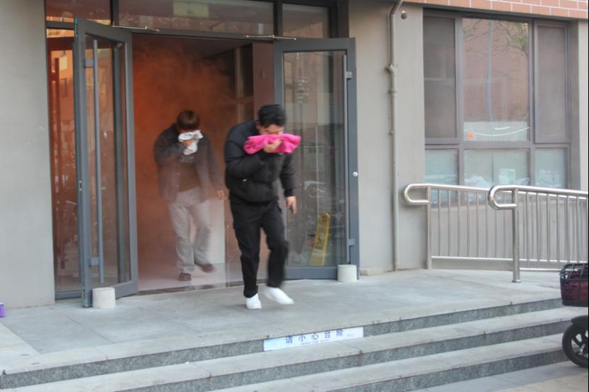 技能培訓結束后,參訓人員轉移至學生公寓,通過場景模擬,演練火場逃生及緊急疏散。火情警報聲響起后,宿舍管理人員第一時間將樓內各處逃生通道大門打開,組織疏散;同學們根據逃生要領,手捂口鼻,彎腰低姿,快速從各自宿舍房間按照指揮有秩序疏散,整個演練過程迅速、安全、有序。