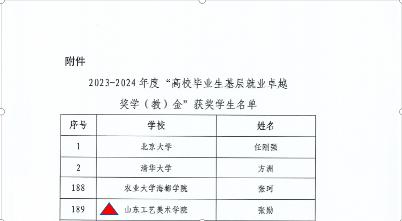 近日,由教育部高校學(xué)生司(高校畢業(yè)生就業(yè)服務(wù)司)和教育部學(xué)生服務(wù)與素質(zhì)發(fā)展中心共同指導(dǎo)、中國教育發(fā)展基金會(huì)設(shè)立的“高校畢業(yè)生基層就業(yè)卓越獎(jiǎng)學(xué)(教)金”2023-2024年度獲獎(jiǎng)名單公布,我校2015屆數(shù)字藝術(shù)與傳媒學(xué)院優(yōu)秀畢業(yè)生張勛獲此殊榮,實(shí)現(xiàn)了學(xué)校在這一獎(jiǎng)項(xiàng)上的歷史性突破。
