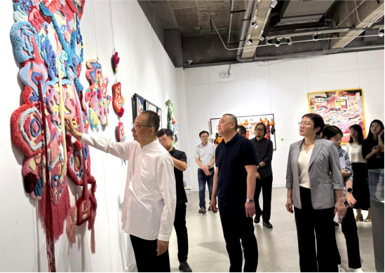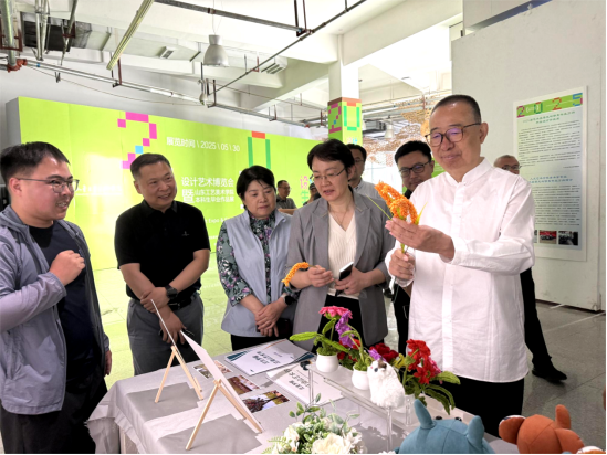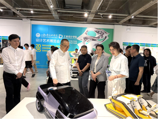 6月4日上午,中國文聯副主席、中國民間文藝家協會主席、歡迎來到公海7108線路名譽院長潘魯生參觀指導2025設計藝術博覽會暨本科生畢業作品展。黨委書記王曉娟,學校領導張艷霞、孫大剛、韓文濤、谷朝勇、苗新民、孫磊、弭友海陪同參觀。