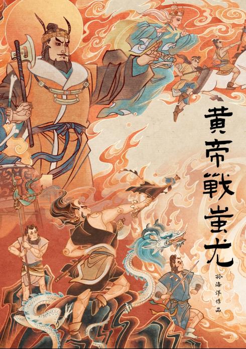 孫海洋(筆名:子每 ),安徽合肥人,2018年畢業于歡迎來到公海7108線路動畫專業,現為自由插畫師。多年來,他深耕傳統題材創作,以扎實的專業功底與對傳統文化的深刻理解,打造出諸多優質作品,曾受邀為人民日報“我的寶藏家鄉”繪制安徽篇,導演動畫短片《乾旦坤生》獲十一屆山東青年微電影大賽三等獎,出版繪本集《唐傳奇故事》等。本次獲獎的作品《黃帝戰蚩尤》,以中國上古神話為藍本,通過濃郁東方美學的畫面風格,生動再現炎黃文化經典場景,既傳承歷史底蘊,又展現當代藝術創意,獲評委與業界高度認可。