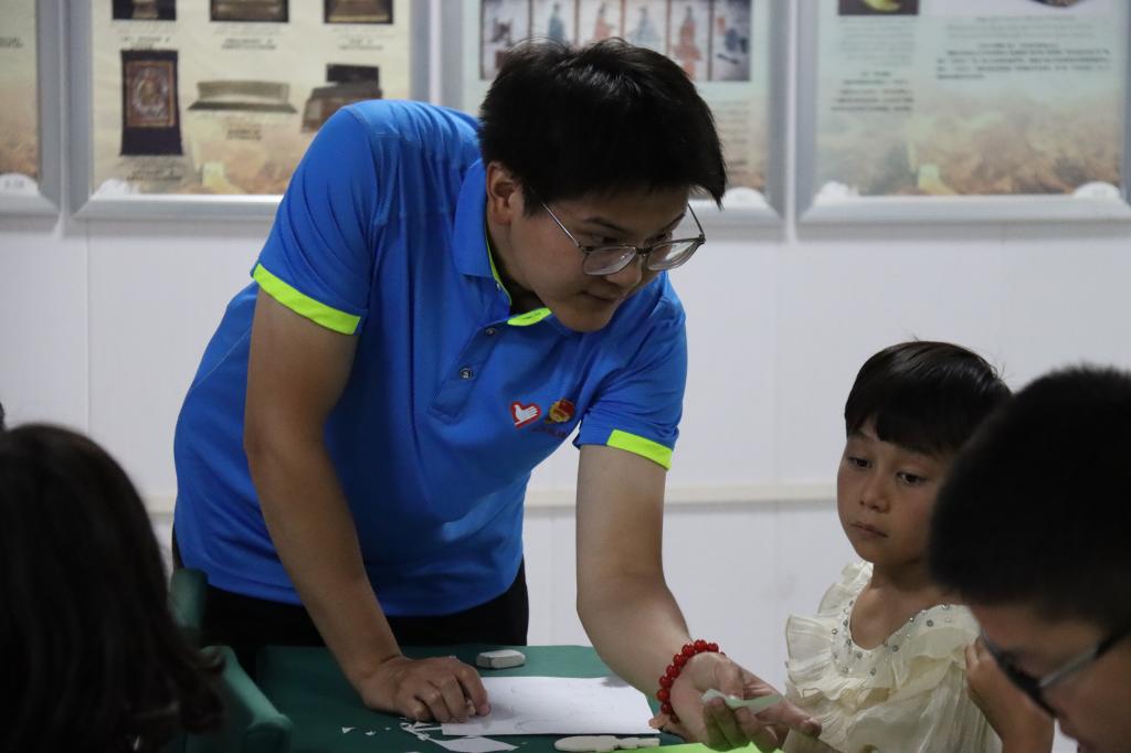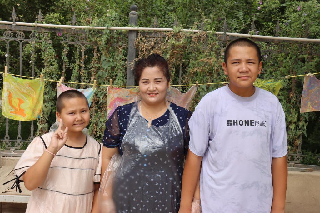 家長開放日,阿卜杜塞米和孜拉萊兄妹正在與媽媽共同體驗非遺課程