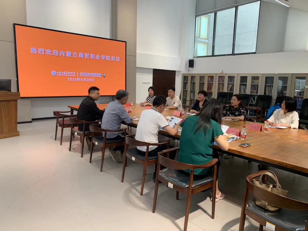 吳向陽對內(nèi)蒙古商貿(mào)職業(yè)學院的來訪表示歡迎,并詳細介紹了我校在藝術(shù)類人才培養(yǎng)、實驗室建設、教師隊伍建設、校企合作等方面的情況。張光帥就人工智能介入藝術(shù)的發(fā)展進行了講解,與會人員還就雙方就今后進一步加強校校合作、資源共享,合作開展人才共育項目、產(chǎn)教融合項目等進行了深入探討。