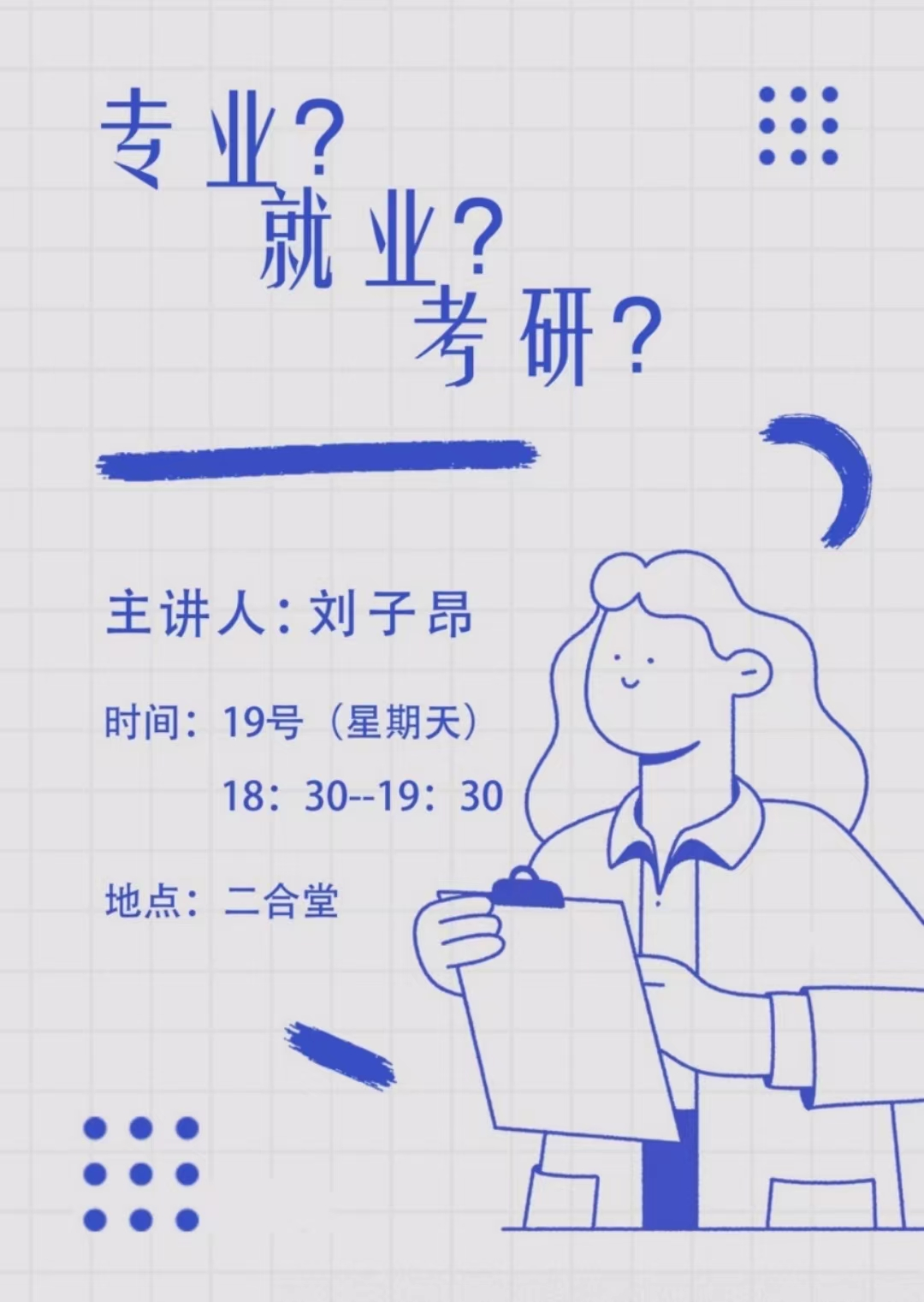 劉子昂以大學生如何更好的規劃大學生活為出發點展開講座:大學期間如何看待考研考編、實習就業等問題?