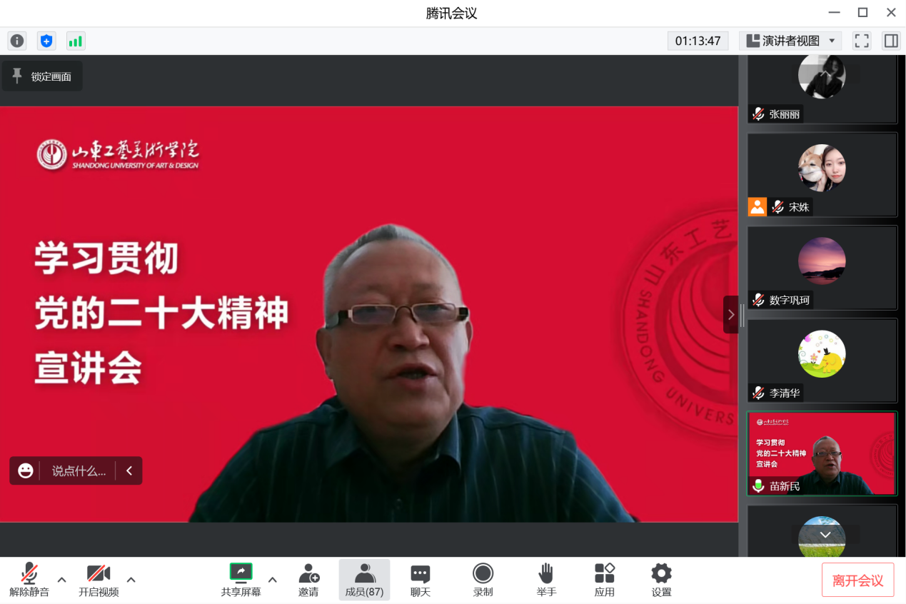 本次宣講由我院黨總支書記李清華主持,黨政領導班子成員、全體教職工以線上形式參加會議。