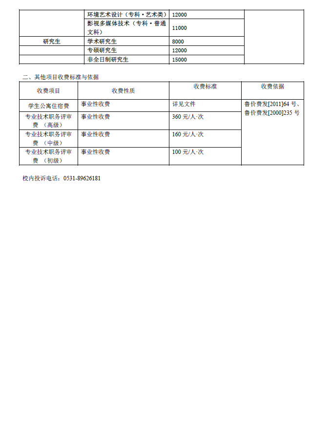 2018年收費項目、收費標準、收費依據、投訴方式公示表