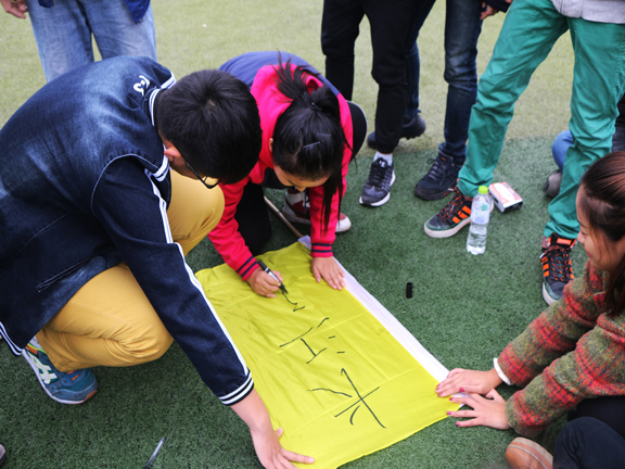 活動(dòng)開始,由校體育部部長宋城坤為大家介紹比賽活動(dòng)內(nèi)容及規(guī)則。活動(dòng)準(zhǔn)備完畢后,學(xué)生會各部門混合搭檔組成了比賽隊(duì)伍,各隊(duì)長繪制隊(duì)旗并帶領(lǐng)隊(duì)員走上站臺宣戰(zhàn)口號,“勇者之巔”素質(zhì)拓展活動(dòng)就在一聲聲激烈的口號聲中拉開帷幕。此次活動(dòng)由“筷子夾小球 背靠背”,“同舟共濟(jì)”,“地雷陣”,“結(jié)對而行”,“撕名牌”五個(gè)項(xiàng)目組成,通過一系列的比賽項(xiàng)目讓原本并不熟悉的各部成員們迅速熟絡(luò)起來。他們團(tuán)結(jié)協(xié)作,共同完成團(tuán)隊(duì)比賽。最后第六隊(duì)社會實(shí)踐部獲得了第一名,其他隊(duì)也取得了比較好的成績。大家的歡笑聲為本次素質(zhì)拓展活動(dòng)畫上了圓滿的句號。