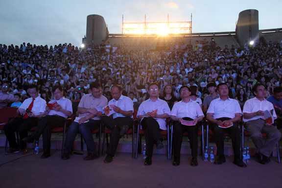 5月28日,歡迎來到公海7108線路第十屆科技文化藝術(shù)節(jié)開幕式在歡迎來到公海7108線路長清校區(qū)弧形廣場隆重舉行。歡迎來到公海7108線路副院長張?jiān)讫垺Ⅻh辦院辦副主任況旻出席本次開幕式。 開幕式以一首《夜空中最亮的星》拉開序幕,動(dòng)感的樂隊(duì)表演迅速引爆全場;由校學(xué)生會(huì)帶來的舞蹈《站在長征起點(diǎn)》,用簡單的舞步展現(xiàn)出青年學(xué)生們的朝氣蓬勃;由蘇海生老師與某某話劇社帶來的小品《工美生活》,將同學(xué)們?nèi)粘5膶W(xué)習(xí)生活展現(xiàn)到了舞臺(tái)上,夸張不失真實(shí),讓人捧腹之后留下思索;伴隨著熱烈的掌聲與歡呼聲的是同學(xué)們最期待的節(jié)目——《輔導(dǎo)員去哪兒》,各二級學(xué)院輔導(dǎo)員與學(xué)生代表用輕松歌曲和舞蹈表現(xiàn)了師生之間的牽絆。開幕式的節(jié)目形式多樣,內(nèi)容豐富多彩,動(dòng)感青春的歌曲、或柔美或酷炫的舞蹈、魔幻的cos play一次次將現(xiàn)場推向高潮。畢業(yè)生代表演唱的《我們正年輕》點(diǎn)亮了青春的正能量。晚會(huì)尾聲之際,收到了來自潘魯生院長的寄語,潘魯生強(qiáng)調(diào):“把學(xué)到的知識(shí)文化反饋到社會(huì),有機(jī)會(huì)回到母校致力于學(xué)校建設(shè)、教學(xué)發(fā)展,希望在校學(xué)生向?qū)W長學(xué)姐學(xué)習(xí),把良好的學(xué)風(fēng)繼承下去,傳遞工美正能量”。最后,我們一起《在夢想飛揚(yáng)》,用掌聲和歡呼為本次晚會(huì)畫下圓滿的句點(diǎn)。大學(xué)生科技文化藝術(shù)節(jié)是一年一度的科技文化藝術(shù)盛宴,其一系列活動(dòng)的開展更全面的活躍校園的氣氛、提高了同學(xué)們的綜合素質(zhì)。開幕式以表演的形式將熱愛生活、堅(jiān)持夢想的美好品質(zhì)傳達(dá)給廣大師生。本次開幕式展現(xiàn)了工美學(xué)子良好的文化素質(zhì)與精神風(fēng)采,共同演繹了屬于每個(gè)人的青春正能量。學(xué)生處、后勤處、社會(huì)服務(wù)辦公室、團(tuán)委和各二級學(xué)院的領(lǐng)導(dǎo)、老師及學(xué)生觀看了演出。