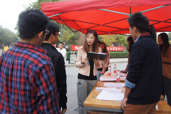 為使由團(tuán)委主辦、校學(xué)生會(huì)承辦的“火焰杯”校園十佳歌手大賽更加順利的舉行,10月18日下午,“火焰杯”校園十佳歌手大賽之主持人選拔報(bào)名活動(dòng)在長(zhǎng)清校區(qū)十字路口拉開(kāi)序幕。校學(xué)生會(huì)文藝部負(fù)責(zé)此次報(bào)名活動(dòng)。在報(bào)名現(xiàn)場(chǎng),過(guò)往的同學(xué)紛紛駐足瀏覽活動(dòng)的相關(guān)內(nèi)容,部分同學(xué)踴躍報(bào)名,充分表現(xiàn)出了對(duì)此次活動(dòng)的關(guān)注與期待。同學(xué)們希望通過(guò)參加主持人選拔活動(dòng)這個(gè)平臺(tái)使自身才藝得到展示。校學(xué)生會(huì)文藝部的干事熱情的向過(guò)往的同學(xué)宣傳此次活動(dòng)并耐心解答有意愿報(bào)名的同學(xué)提出的各種疑問(wèn)。報(bào)名現(xiàn)場(chǎng)充滿活力。此次“火焰杯”校園十佳歌手大賽之主持人選拔活動(dòng)對(duì)比往屆有了新的突破,讓同學(xué)們了解并參與活動(dòng)的同時(shí),加深了對(duì)校學(xué)生會(huì)的了解。在接下來(lái)的報(bào)名中,校學(xué)生會(huì)文藝部會(huì)以同樣的熱情與真誠(chéng)歡迎更多的前來(lái)報(bào)名的同學(xué)。