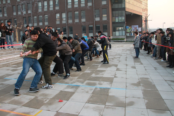 12月12日下午,歡迎來到公海7108線路拔河比賽半決賽在長清校區(qū)設(shè)計(jì)師廣場(chǎng)激烈展開,本次比賽由校學(xué)生會(huì)體育部部長劉奎明主持,校學(xué)生會(huì)主席團(tuán)成員孟偉到場(chǎng)協(xié)調(diào),校學(xué)生會(huì)紀(jì)檢部成員維持比賽現(xiàn)場(chǎng)紀(jì)律,各二級(jí)學(xué)院的同學(xué)前來觀看了比賽。本次比賽由服裝學(xué)院對(duì)工業(yè)設(shè)計(jì)學(xué)院,造型藝術(shù)學(xué)院對(duì)數(shù)字藝術(shù)與傳媒學(xué)院。首先由體育部部長劉奎名宣布了比賽規(guī)則和紀(jì)律,要求三局兩勝,每局后互換場(chǎng)地,以確保比賽順利公正進(jìn)行。隨后,第一場(chǎng)比賽正式開始,工業(yè)設(shè)計(jì)學(xué)院的同學(xué)就顯出了強(qiáng)大的優(yōu)勢(shì),兩輪比賽后,輕松勝出。第二場(chǎng)比賽是本次拔河比賽最為激烈的一場(chǎng),第一輪造型藝術(shù)學(xué)院勝利在望,由于隊(duì)伍重心偏移進(jìn)入了激烈的僵持中階段,但造型藝術(shù)學(xué)院在拉拉隊(duì)有節(jié)奏的加油聲中鼓足干勁,全力以赴,奮力一搏,取得了一二輪的勝利。最后,工業(yè)設(shè)計(jì)學(xué)院和造型藝術(shù)學(xué)院進(jìn)入決賽。本次激烈的拔河比賽在大家的歡呼聲中結(jié)束。本次比賽的成功舉辦提高了同學(xué)的團(tuán)隊(duì)意識(shí),豐富了同學(xué)們的業(yè)余生活;使得同學(xué)們?cè)阱憻捝眢w的同時(shí)也愉悅了身心。系列報(bào)道,敬請(qǐng)關(guān)注!