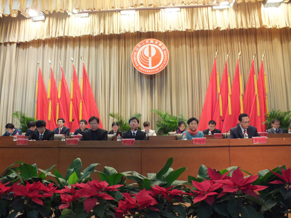 團委書記袁文昌代表團委向大會致辭,并對學生會提出了四點希望:一、強化思想引領,堅定思想道路改進工作方式,提高工作效率;二、強化青年學生的凝聚力,集中廣大青年學生的創造力,群策群力;三,強化對青年學生成長的服務,學生會要更加堅定以服務學生為本;四,強化組織覆蓋,加強學生會自身建設,做到立體交叉覆蓋,擴大黨的青年基礎。工會主席祈建萍代表工會向大會表示祝賀,并要求學生會干部要樹立堅定的理想和信念,要勤奮努力、奮發成才、與時俱進、開拓創新、腳踏實地、艱苦創業。隨后,大會對來自山東師范大學,山東藝術學院,山東輕工業大學,山東中醫藥大學,山東女子學院,濟南大學以及山東各兄弟學院發來的賀電表示感謝。接著,大會領導嘉賓與全體學生代表合影留念。會議最后由第十八屆學生會主席陳太源做第十八屆學生會工作報告,第十九屆籌委會成員王家和宣讀倡議書。第十九屆學生代表大會上午會議遵循黨的教育方針和政策,充分發揮了學生會自我管理,自我教育,自我服務的方針,進一步推動了學生會工作,為第十九次學生代表大會委員的產生打下了堅實的基礎,確保了大會的成功召開。團委老師李忠誠,鄒曉紅,朱冉冉以及224名學生代表參加了本次會議。