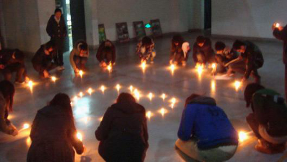 3月11日13:46,日本附近海域發(fā)生9.0級地震,嚴(yán)重災(zāi)難。3月20日晚上6:30,我校校學(xué)生會(huì)社團(tuán)部日語協(xié)會(huì)長清校區(qū)教學(xué)樓一樓大廳為日本地震中喪生的遇難者默哀祈福。參加本次活動(dòng)的有部分社團(tuán)部成員以及日語協(xié)會(huì)會(huì)員,本次祈福活動(dòng)由日語協(xié)會(huì)會(huì)長葛景昂主持。晚上6:30祈福活動(dòng)正式開始,我校校學(xué)生會(huì)社團(tuán)部日語協(xié)會(huì)會(huì)員在大廳中央提前用蠟燭擺成了一個(gè)心形,同學(xué)們每人手中持著一支白蠟燭,面向里圍成一圈。然后會(huì)長葛景昂發(fā)表了講話,簡單介紹了一下日本本次地震的情況,以及傷毀程度,并對遇難者表示深切哀悼,并祝愿日本人民早日克服困難,重建家園,隨后在場的每位同學(xué)向遇難者默哀三分鐘,希望大家的祝福能到達(dá)災(zāi)區(qū)人民的心里,感受到我們的溫暖。災(zāi)難能夠毀掉房屋,但毀不了人的堅(jiān)強(qiáng)的毅力。通過本次祈福活動(dòng),同學(xué)們?yōu)榈卣鹩鲭y者和災(zāi)區(qū)人民獻(xiàn)上了自己的祝福。讓我們傳遞愛心,傳遞力量,傳遞希望,相信災(zāi)區(qū)人民一定會(huì)從災(zāi)難的陰影中走出來,重新邁向新的生活。