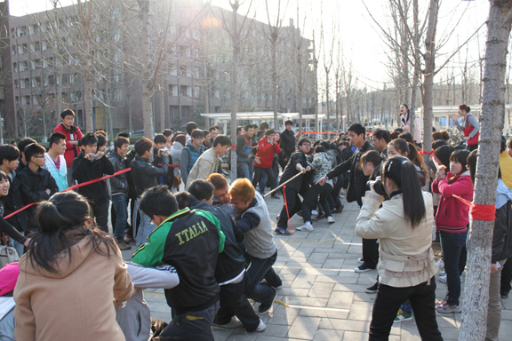 為了豐富在校大學生的課余生活,增進同學們的團結與合作精神。3月16日下午4:30,我校春季拔河比賽于長清校區17號公寓前空地順利舉行。本次的拔河比賽由校學生會體育部部長白澤凡主持,校學生會副主席團成員甘文到場協調,體育部成員維持比賽程序。