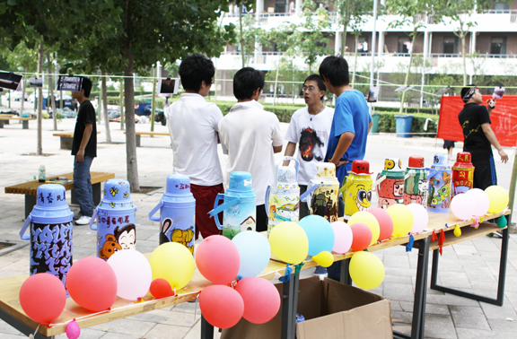 暖瓶裝飾涂鴉大賽中,各二級學院團隊代表大膽創作,精心構思,利用水粉、丙烯等繪畫工具進行作品創作。多彩的繪畫內容,新穎的創意,無不讓人眼前一亮,充分體現了當代大學生積極向上的青春風采。