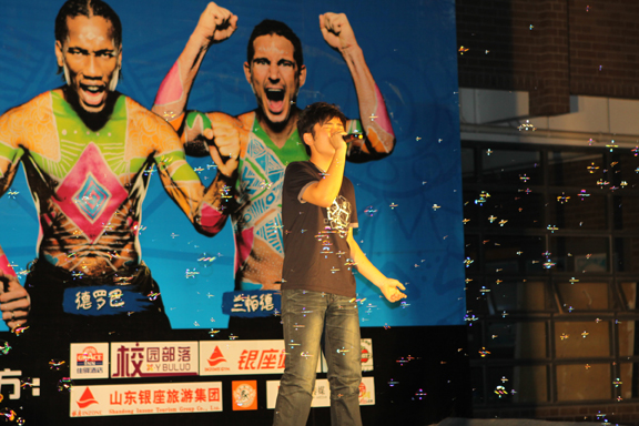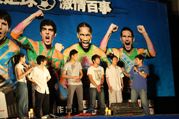 南非足球世界杯日益臨近,足球運動之風吹遍校園,在全世界盛會來臨之際,由團委主辦、大學生足球協會承辦的“百事五人制球王爭霸賽”即將在我校舉行。5月26日晚7:30,伴隨著動感、歡快的音樂,“百事五人制球王爭霸賽”開幕式在長清校區17棟樓U型廣場正式舉行。校學生會秘書長史旭鳳、副主席王守棟,數字藝術與傳媒學院主席張恩光參加了本次開幕式。在一段激情四射的現代舞中,開幕式正式拉開帷幕。炫動的舞蹈、激情的音樂、精彩的節目以及一浪高過一浪的歡呼聲,構成了百事足球嘉年華開幕會的全部內容。充滿動感的街舞、富有激情的演唱、幽默詼諧的小品、扣人心弦的武術表演一一上演,精彩的表演贏得臺下觀眾的熱烈掌聲和歡笑聲。此外,加上節目主持人幽默的臺詞,現場熱情不斷高漲,并在新生代搖滾樂隊齒輪樂隊的精彩表演中達到高潮。動感的節奏,激情的演唱,處處傳遞著樂隊熾熱的熱情和青春的朝氣。晚會中同學們的踴躍參與俯臥撐和顛球比賽等互動節目,現場氣氛輕松活躍。晚會為廣大觀眾獻上了一場極其豐富的視聽盛宴,并在精彩的表演中落幕。晚會圓滿結束,這也標志著“百事五人制球王爭霸賽”正式開始。本次比賽盛會借助無可比擬的體育明星資源,為所有心懷夢想的中國青少年提供不斷超越自我,突破渴望的機會和舞臺,旨在與廣大足球愛好者一同創造屬于草根階層的足球狂歡。在未來的十幾天里,我們將會感受足球帶來的激情,讓體育的精神為本次盛會增光添彩。