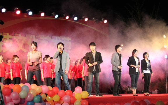 絢麗的禮花、振奮的鼓舞、激情的音樂(lè)、張揚(yáng)的青春。5月19日晚 7:45,以“青春踏歌行 世博傳夢(mèng)想”為主題的第六屆大學(xué)生科技文化藝術(shù)節(jié)開(kāi)幕式在我校長(zhǎng)清校區(qū)弧形廣場(chǎng)隆重舉行。此次開(kāi)幕式晚會(huì)由團(tuán)委主辦、校學(xué)生會(huì)承辦。出席此次晚會(huì)的嘉賓有:我校院長(zhǎng)