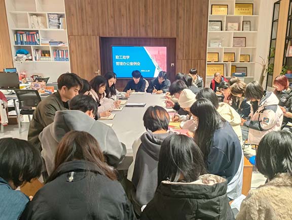 會議伊始,干事長劉新宇,副干事長婁春鵬、鄧玉潔,秘書長曾慶學、顧函瑞聽取了各組的工作日程匯報及下周工作計劃并對日后勤工助學工作事務進行了規劃,在認真聽取各組匯報內容后提出以下要求:一、樓道內的乒乓球臺需保持清潔,定期進行衛生維護。二、每次活動前,需提前準備好海報、橫幅等宣傳物品,確保活動順利進行。三、辦公室成員在值班期間需嚴格遵守值班紀律。四、積極主動地迎接老師完成力所能及的事務。五、大二同學需積極做好與大一同學的工作交接,并詳細講解和強調辦公室的日常規章制度,確保工作連續性和規范性。六、辦公室人員的排班需均勻分布,確保每個時段都有充足人手以保證辦公室工作的正常運轉。七、明確評獎評優的條件,督促有意向的各組干事積極準備相關材料。八、各組負責人和大二非負責人需對剛結束的跳繩比賽進行總結與反思,以便今后改進和提升。
