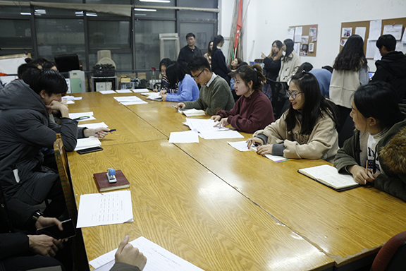 會議伊始,周杰對本月即將進行的2018年度評優評獎活動進行簡單的介紹。其次,秘書徐寧和王變娥對評優評獎的詳細內容進行了說明,重點強調了本月27號之前為領取評優評獎申請表時間,11月27號到12月4號為交表時間。之后考核組、崗前組、酬金組對本月各組的工作情況作了簡要的總結,并對接下來的工作做了詳細的部署:一、考核組干事提出了各部門工作中出現的問題并給予了一定的意見和建議。二、崗前組干事針對各組上崗、退崗、請假、與各組負責老師溝通問題進行說明。三、酬金組對上月存在的酬金問題作了詳細的解答。最后,團委各組負責人對小組長提出的問題進行了詳細解答。