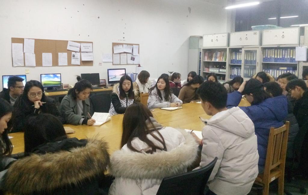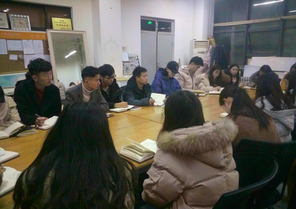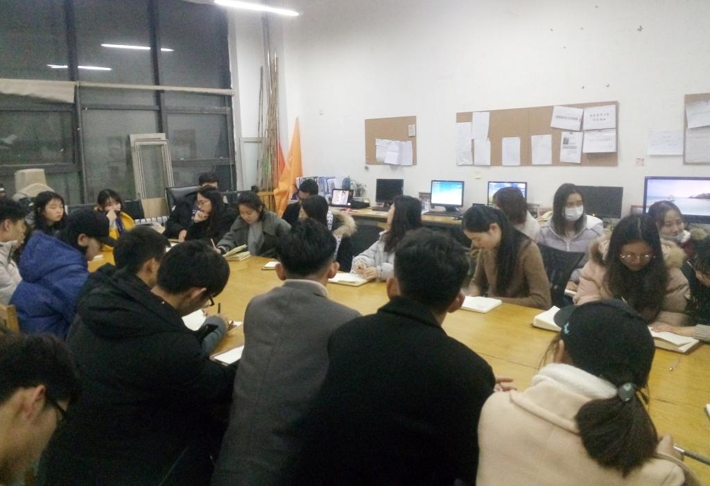 會議伊始,干事長王剛對全體干事本月工作狀況做了全面總結,并對接下來學期末的工作做了整體部署:一、進一步完善評優評獎的工作,確保了公平公正;二、保持辦公室物品擺放整齊,貨架書本擺放整齊劃一;三、愛護公共財物,物品擺放整齊;四、組織“創青春”小分隊。五、說明本學期加班情況,加班期間加大對下面小組的抽查力度。六、勤工助學新活動策劃書上交。 七、確定一月份加班時間和安排各組學期工作總結與計劃。最后,干事長王剛再次強調要明確各自的工作任務,端正各自的工作態度。