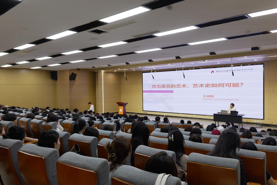 22日上午,新生們在階梯一教室收聽了來自首都師范大學藝術學部主任、藝術與美育研究院院長王德勝教授題為《作為美育的藝術、藝術史如何可能?》的學術講座。王德勝由美育講到藝術,深刻闡釋了美育與藝術之間的關系。提到“以美育人”就是要提升學生的審美和人文素養,要注重學生個性化的情感體驗和教育效果的潛移默化。講座內容詳實、深刻,為同學們的學術研究提供了新思路。