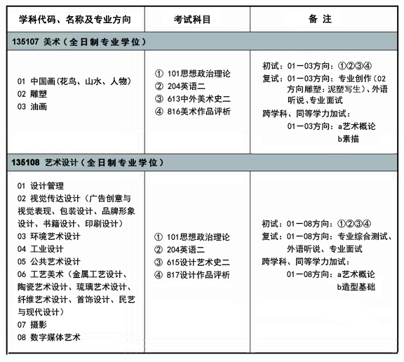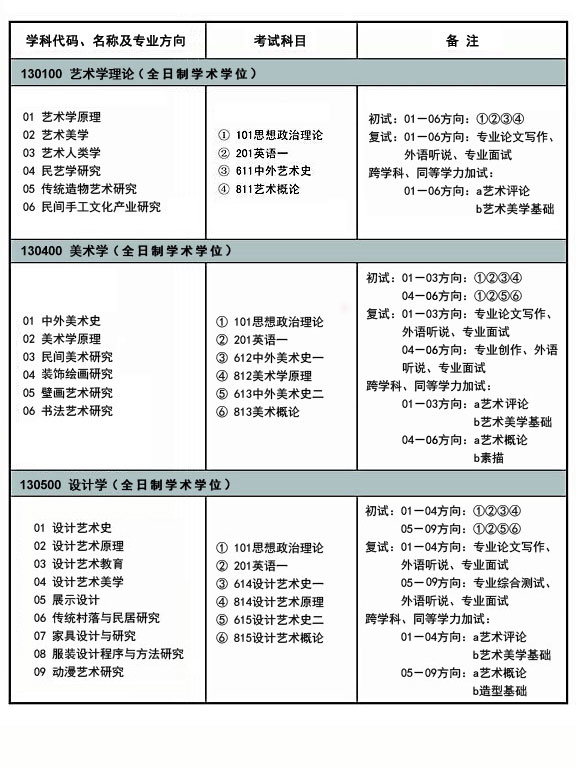 (二)初試各學科(方向)主要參考書目135107美術01—03方向: