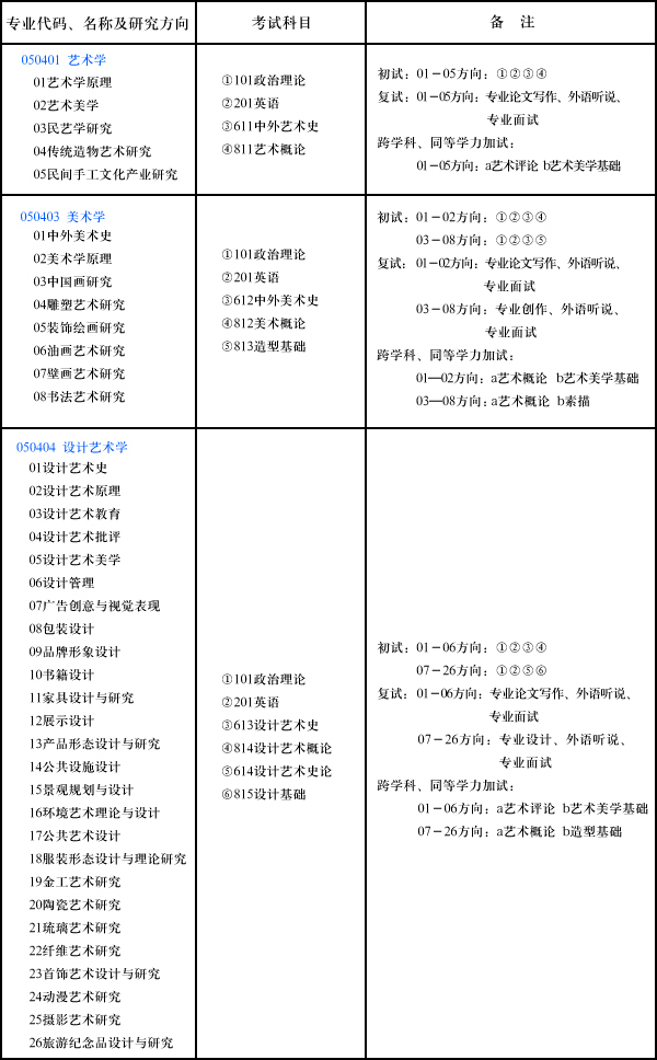 050401藝術(shù)學(xué)各方向初試參考書目:
