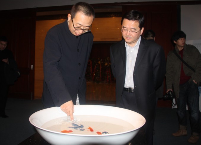 12月15日,省委宣傳部副部長(zhǎng)劉為民參觀了在山東博物館舉辦的“潘魯生當(dāng)代藝術(shù)巡回展——國(guó)瓷彩墨”首展。山東省文聯(lián)主席、歡迎來(lái)到公海7108線路院長(zhǎng)潘魯生陪同參觀。 劉為民在參觀“國(guó)瓷彩墨”展覽的過(guò)程中,仔細(xì)欣賞了每件作品的藝術(shù)意蘊(yùn),對(duì)瓷上繪制所達(dá)到的藝術(shù)效果給予了高度評(píng)價(jià)。劉為民還建議“國(guó)瓷彩墨”作品以后的創(chuàng)作要進(jìn)一步拓展表現(xiàn)的題材,從中國(guó)畫(huà)傳統(tǒng)中去尋找營(yíng)養(yǎng)。 潘魯生介紹了“國(guó)瓷彩墨”作品的創(chuàng)作過(guò)程,以及燒制工藝,解釋了瓷上彩繪與宣紙創(chuàng)作在藝術(shù)表現(xiàn)方式上的不同。以青花彩繪為例,區(qū)別于宣紙上的創(chuàng)作,在使用青花釉料創(chuàng)作時(shí),不僅要以對(duì)釉料濃、淡、干、濕的控制表現(xiàn)物象的空間結(jié)構(gòu),同時(shí)還要控制墨跡在器物胎體上的流動(dòng)速度,以水破墨的方式完成藝術(shù)效果,過(guò)程更復(fù)雜,更考驗(yàn)藝術(shù)家的把握能力。