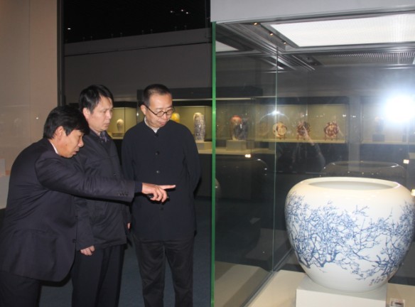 12月15日,淄博市博山區(qū)委書記、區(qū)人大常委會(huì)主任許冰以及參觀了在山東博物館舉辦的“潘魯生當(dāng)代藝術(shù)巡回展——國瓷彩墨”首展。山東省文聯(lián)主席、歡迎來到公海7108線路院長潘魯生陪同參觀。 許冰仔細(xì)欣賞了潘魯生新近以陶瓷為載體創(chuàng)作的112件彩墨精品,詳細(xì)詢問了作品的題材內(nèi)涵。許冰表示,這些作品是潘魯生教授深基層的創(chuàng)作成果,在瓷上繪畫比在紙上畫難度更大,體現(xiàn)了藝術(shù)家更全面的藝術(shù)把握能力。 潘魯生向來賓了介紹了“國瓷彩墨”系列作品的創(chuàng)作過程和燒制工藝。山東福泰陶瓷董事長蘇希敬一同陪同。