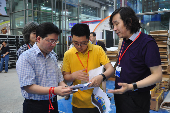 5月17日上午,山東省委宣傳部副部長劉為民、高玉清在深圳會展中心視察了已經進入施工建設沖刺階段的第八屆深圳文博會山東展區場館建設工作。項目總指揮、我校院長潘魯生,項目副總指揮、我校副院長苗登宇視察時陪同。