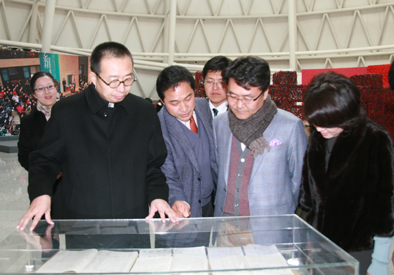 2月22日上午,韓國大慶大學校長俞進善一行參觀了正在我校美術館展出的“手藝農村——