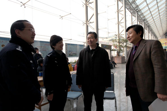 2月22、23日,我校2010年招生專業報名工作在濟南舜耕國際會展中心順利舉行。報名期間,黨委副書記、紀委書記李世平,副院長李新、刁在祥、張云龍、苗登宇,院長助理、辦公室主任王立果在相關工作人員的陪同下先后來到招生報名現場視察報名工作。