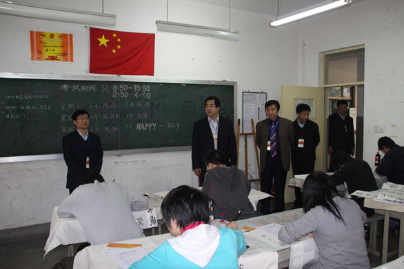 2月24日上午,我校2010年招生專業(yè)考試拉開帷幕,部分考生在應用設計學院分院考點參加考試。上午10:00,副院長張云龍,院長助理、辦公室主任王立果來到應用設計學院分院考點巡視,檢查指導考試工作。省電影學校黨委書記、校長安立元陪同巡視。 副院長張云龍,院長助理、辦公室主任王立果仔細巡視各個考場,查閱考生試卷,詢問考試有關事宜,指導考試工作。校領導充分肯定了井然有序的考場秩序,要求監(jiān)考人員要本著對考生負責的態(tài)度,嚴肅考場紀律,嚴格考試程序,確保考試的公平、公正。 應用設計學院分院考點領導對我校的專業(yè)招生考試工作高度重視,成立專門機構,承擔了考試具體工作。學校領導對省電影學校在我校招生專業(yè)考試工作方面給予的支持和付出的努力表示感謝。 考務組組長康健,考務組副組長滕丕強等陪同巡視。