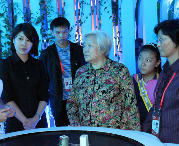 全國(guó)政協(xié)原副主席郝建秀一行,10月2日下午訪問(wèn)了世博會(huì)山東館。郝建秀來(lái)到山東館,興致勃勃地聽(tīng)取了山東館工作人員的介紹,仔細(xì)察看了展品展項(xiàng),詢問(wèn)相關(guān)內(nèi)容,在孔子像前留影,并品嘗了張?jiān)F咸丫疲硎荆荷綎|是她的老家,來(lái)到山東館特別有感情,通過(guò)這個(gè)館的展示,看到山東近年來(lái)社會(huì)經(jīng)濟(jì)文化所取得的成就,非常高興。山東館向她贈(zèng)送了帶有山東館圖案的錫雕工藝盤(pán)。最后她為山東館簽了名,并向現(xiàn)場(chǎng)為她做解說(shuō)服務(wù)的工作人員表示感謝:你們辛苦了。 運(yùn)營(yíng)團(tuán)隊(duì)相關(guān)負(fù)責(zé)人陪同。