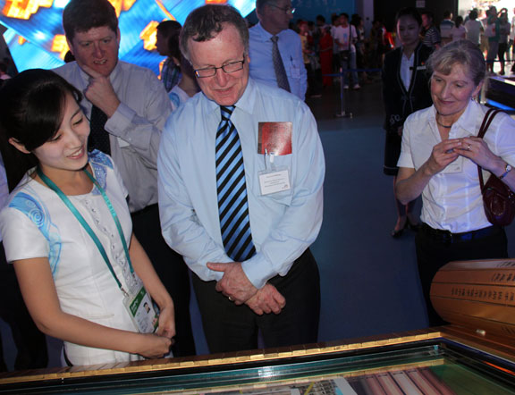 8月18日,澳大利亞塔斯馬尼亞州能源部部長布賴恩?格林訪問世博會山東館。山東館執行副館長張吉成及運營團隊各部負責人會見來賓。 布賴恩?格林饒有興致地觀看了山東館各展品展項,就山東經濟文化建設、產業發展情況進行了交流。格林表示,世博會山東館充分展示了山東悠久的歷史文化和高水平的科技成果,展示了設計創意的實力和具有前瞻性的發展理念,使人對山東發展有了更加生動、具體而且深入的認識,衷心期待未來山東有更好的發展。