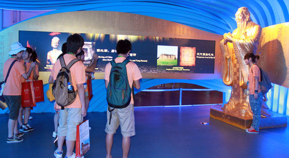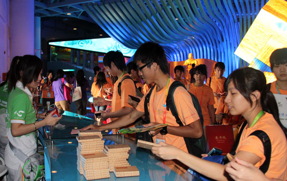 8月18日,“港澳學(xué)生上海世博參訪團(tuán)”2500名學(xué)生代表訪問世博會(huì)山東館。山東館運(yùn)營(yíng)團(tuán)隊(duì)迎接來賓。 港澳學(xué)生代表紛紛表示,來到山東館,有歸家之感,瞻仰孔子像,了解“魯班鎖”,體會(huì)“花如意”的寓意,就像一次文化的尋根之旅,深切感受到祖國(guó)文化的脈動(dòng),親切而又感動(dòng)。學(xué)生代表認(rèn)真觀看《海岱齊魯 禮儀之都》演示,詳細(xì)了解“《齊民要術(shù)》與登海育種”、“蛋殼黑陶與航天高科技陶瓷”、“劉洪算盤與浪潮服務(wù)器”、“現(xiàn)代足球的起源-蹴鞠與全民全運(yùn)”等互動(dòng)展項(xiàng),紛紛與孔子像合影并領(lǐng)取了《論語百句》等紀(jì)念品。訪問交流活動(dòng)充分體現(xiàn)了山東館互動(dòng)交流的展示理念,面向廣大學(xué)生、港澳學(xué)子傳播齊魯文化、中華智慧,產(chǎn)生積極反響。