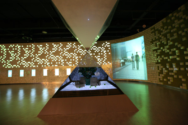 從展項設計看,運用多媒體技術,以影像形式記錄梳理發展脈絡,是主要的展示手段。例如,國家館通過前、左、右三面大銀幕,在不同的空間播放同時主題影片,如 “微型史詩”,展現當代中國家庭生活與城市建設的變遷發展。山東館的魯班鎖運用卯榫智慧和尖端顯示技術,將2100多塊LED管束模塊組裝、拼接、連線、總控集成,于巧妙構型中演映不同主題視頻,變換光影效果。浙江館“青瓷碗”造型的影像裝置,輔以水波漫溢的形態,投影展示浙江的自然風光與發展成果。上海館以動感影院形式,模擬不同交通工具駕乘感受,使觀者于行走間瀏覽城市變遷,體驗上海“永遠的新天地”。應該說,多媒體技術、影像語言在中國國家館及省區市館得到了最為普遍的應用,成為本次展示活動最主要的設計語言。某種程度上,也反映了繼北京奧運開幕式創造性地運用影像語言之后,中國當代設計領域對于影像展示手段的規模化應用,具有時代特點。同時,陳設性展示依然是主要的展示形式,不同之處在于展品、展項的文化信息含量及其所蘊含的啟迪空間。例如,中國國家館通過“童心暢想”兒童畫的展示,提供了富于沖擊力的審美空間和思考主題。諸多地方展館展示了珍貴的出土文物和民間工藝品,體現了文化遺產與城市發展之間的聯系與思考。此外,營造體驗環境是重要的展示內容,也是主要的展示手段,形成的意境、傳達的主題,也富于形式的沖擊力。例如,中國國家館里“水”的意象貫穿始終,形態各異,既是意境的凝練,也與現實的水資源問題相呼應;“意象竹林”則是對審美的、詩意生活的境界的營造。