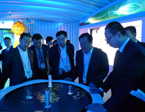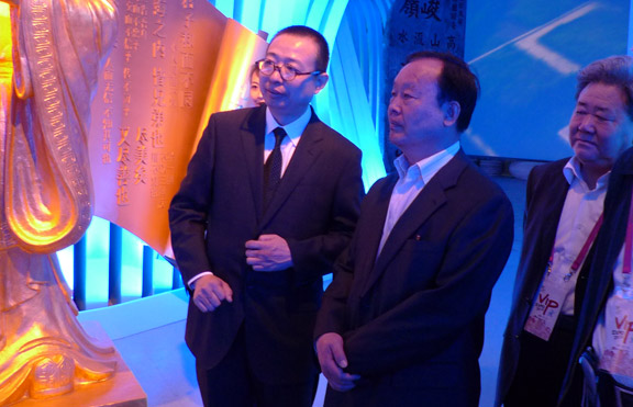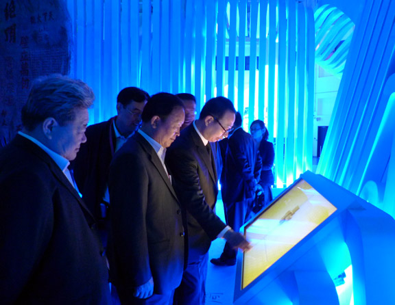 為陳建國書記一行介紹了山東館“齊魯青未了”的主題理念,并對展品展項做了詳細的講解。陳建國書記還介紹了世博寧夏館主題“天賦寧夏,融合之城”,歡迎山東的同志前去參觀交流,共同探討未來城市發展理念。